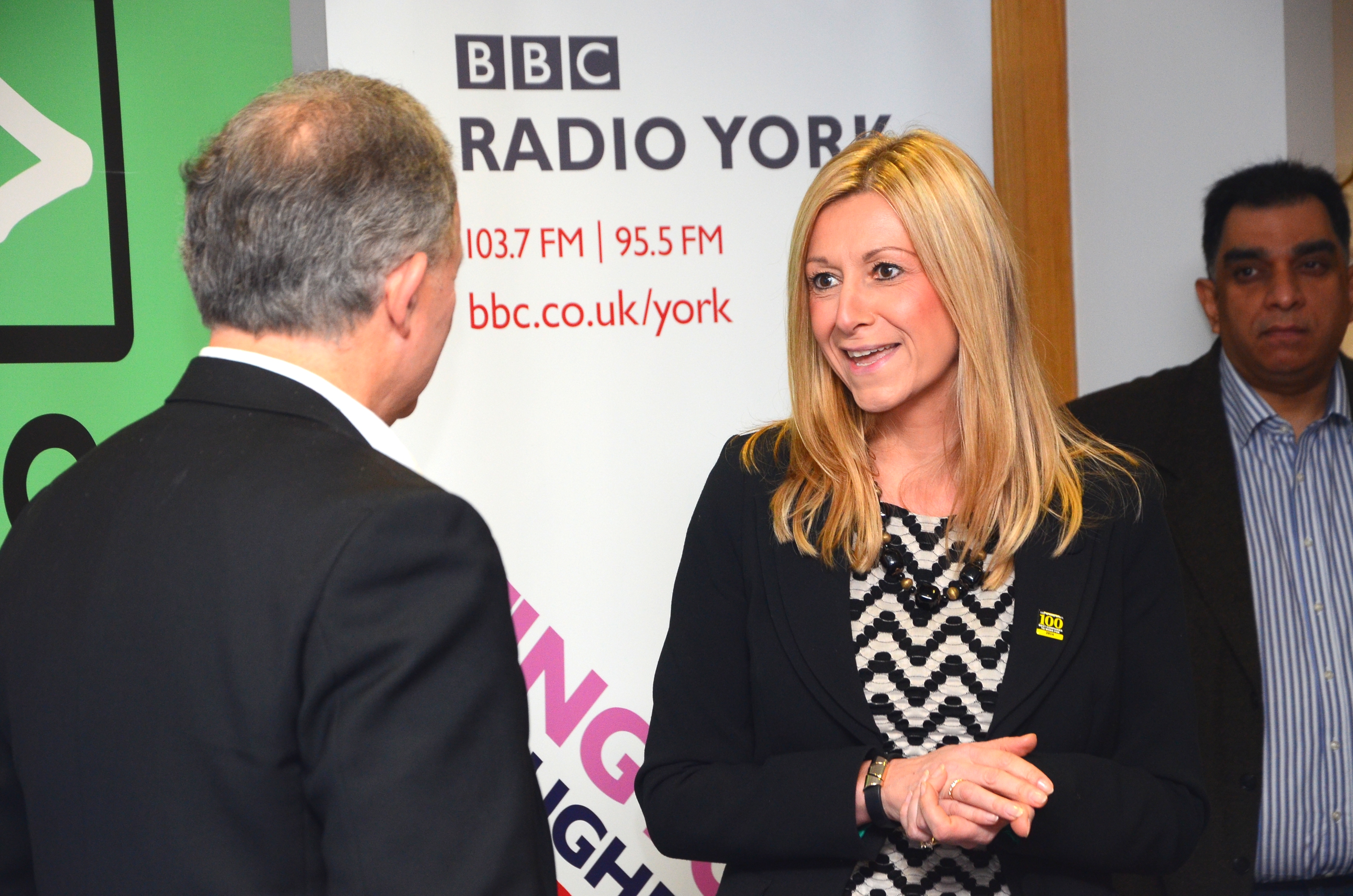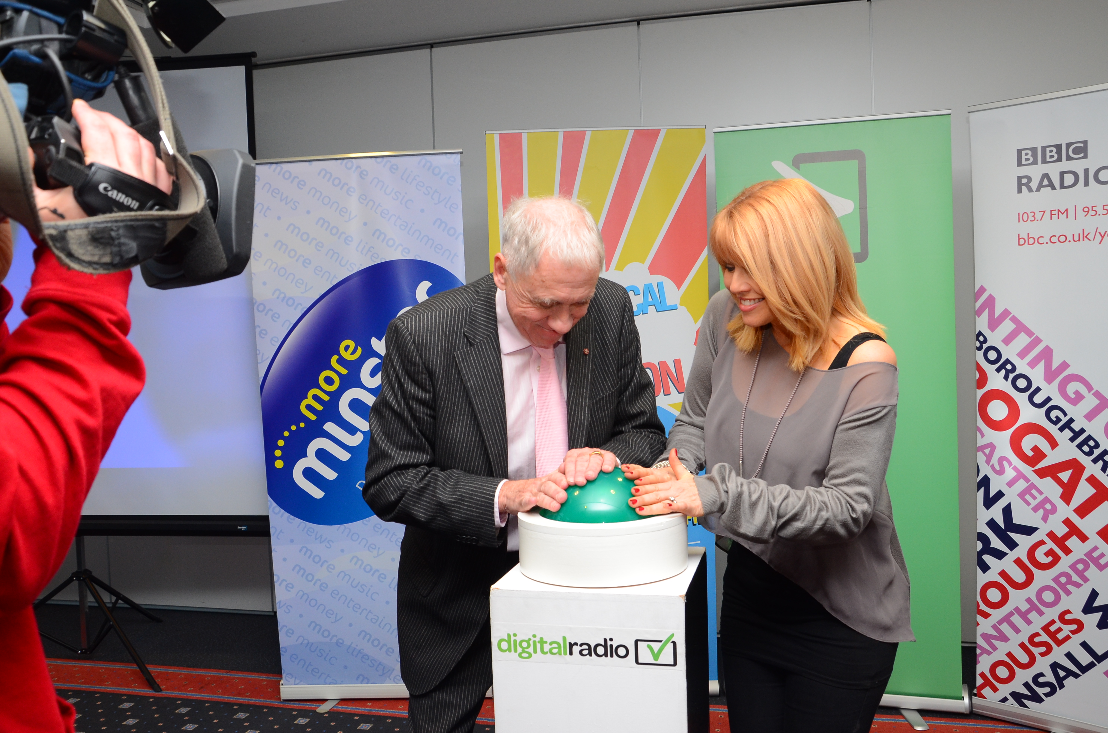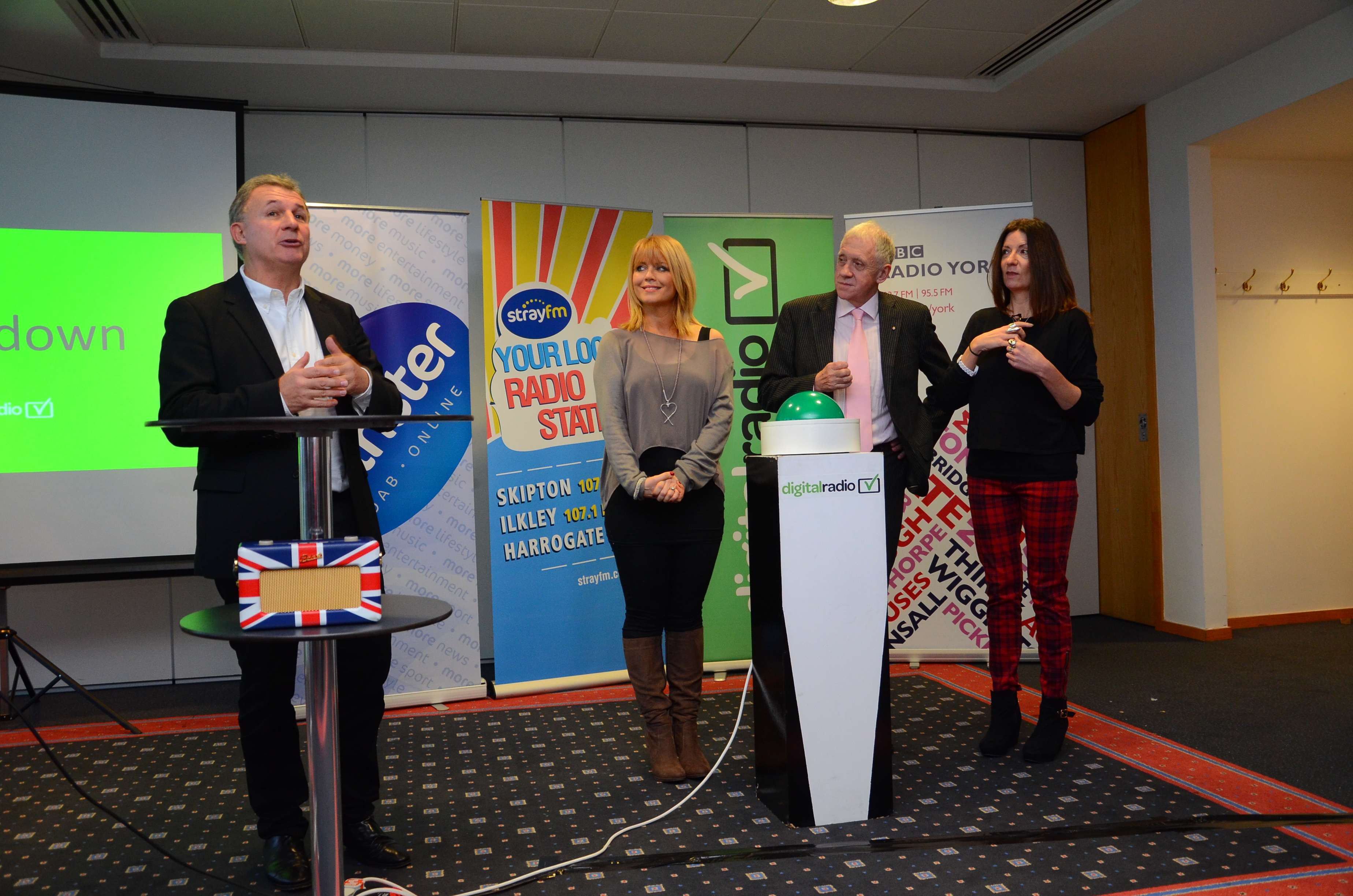Local broadcasters Harry Gration from BBC Look North and Christine Talbot from ITV Yorkshire, together with Katherine Dow Blyton who plays the part of Harriet Finch in Emmerdale, gave a big boost to nearly 700,000 radio listeners in York, Harrogate and across North Yorkshire when they pressed a big green switch, switching-on four new digital radio transmitters. The switch-on means that 81% of listeners in North Yorkshire will be able to receive their favourite local radio stations – BBC Radio York, Stray FM, and Minster FM – on DAB digital radio in time for Christmas.