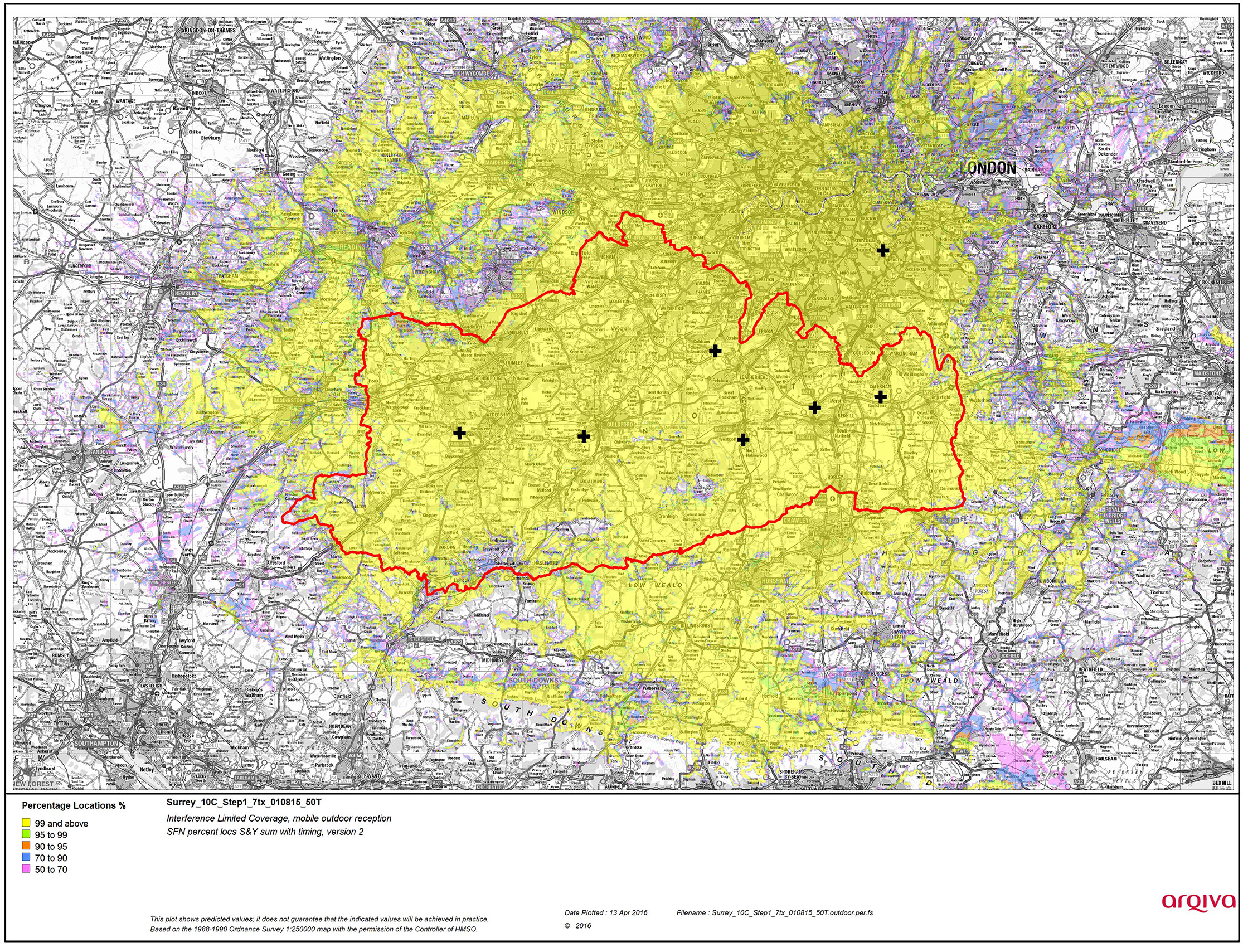 The multiplex is broadcasting with transmitters at Crystal Palace, Guildford, Reigate, Stoke D’Abernon, Hungry Hill, Dorking and Caterham Old Park Wood